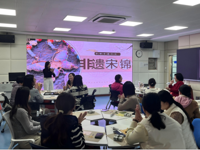 宋锦作为中国传统丝织工艺之瑰宝,位列“四大名锦”之一,承载着千年的织造智慧与雅致的东方美学,兼具艺术价值与文化底蕴。活动中,宋锦非遗传承人倪老师讲解了宋锦的历史源流、织造技艺、纹样寓意及手作技法。女教职工们化身“手作匠人”,专注裁剪、精心拼接,相互交流技巧、分享灵感,在欢声笑语中完成了属于自己的宋锦作品,在传统工艺的温润中拉近了彼此的距离。