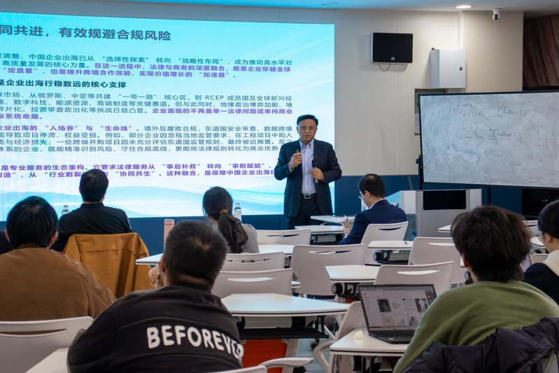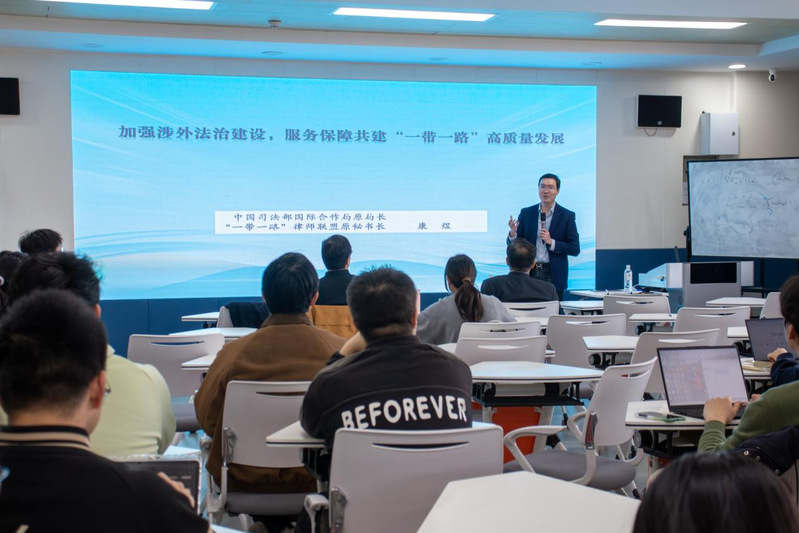 康煜围绕涉外法治建设、人才培养、共建“一带一路”、法商融合、国际合作五个维度展开阐述。他指出,涉外法治是国家战略的重要支撑,加强涉外法治建设既是推进中国式现代化的长远所需,也是应对全球风险挑战的当务之急。针对我国涉外法治人才短板,他提出需从完善法规体系、深化国际合作、推动律所“走出去”等方面协同发力,加快培养复合型人才。围绕“一带一路”建设,他强调面对国际纠纷频发、法律风险复杂的形势,必须强化规则意识,健全法治供给与司法协作,为企业“走出去”营造稳定的法治环境。在法商融合方面,他结合多国调研经验指出,企业出海须将法律风控嵌入商务全流程,合规意识是国际市场的“入场券”与海外发展的“生命线”。关于国际合作,他介绍了“一带一路”法律服务联盟的建设进展,强调要发挥上海合作组织等平台作用,完善区域经贸规则,推动资源共享与规则衔接,为高质量国际合作提供坚实法治支撑。
